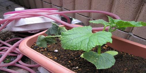 きゅうりの苗は、もともと持っていたのですが、「日当たり悪い+土が乾燥する」で、ひん死状態になってしまったので、もう一つ苗を買いました。