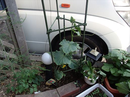 そして雌花もだいぶ大きくなってきました。あとは雌花と雄花が同時に咲くのを祈るばかりですね。同時に咲かなかったら、、、秘密兵器を使いましょう。。。