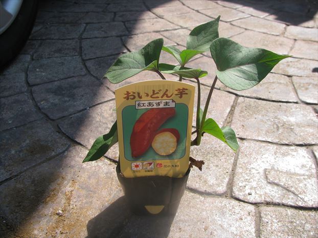 こんかいは、ウィルスフリーポットというので育てます。品種は紅あずま。なんとこの苗、成長すると茎が伸びてきて、それを切って植えると、さつまいもができるとか。僕の花壇は、きゅうりが植えてあることもあり何株も植えるスペースがないので、多分ないと思いますが、もしかしたら、西の花壇用に切ることもあるかもしれません。