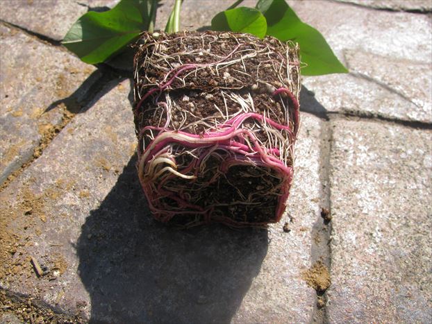 ここで少し雑談を。さつまいもってのは、本来栄養を蓄えるためにあるらしく、そのためあまり養分がない土でも育つとか。逆に栄養がありすぎると、サツマイモの必要がなくなるらしく、葉っぱだけ茂って終わってしまうらしいです。