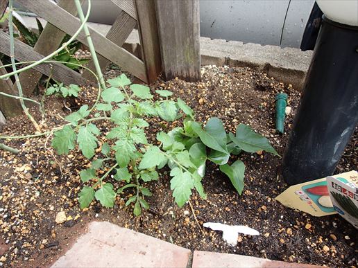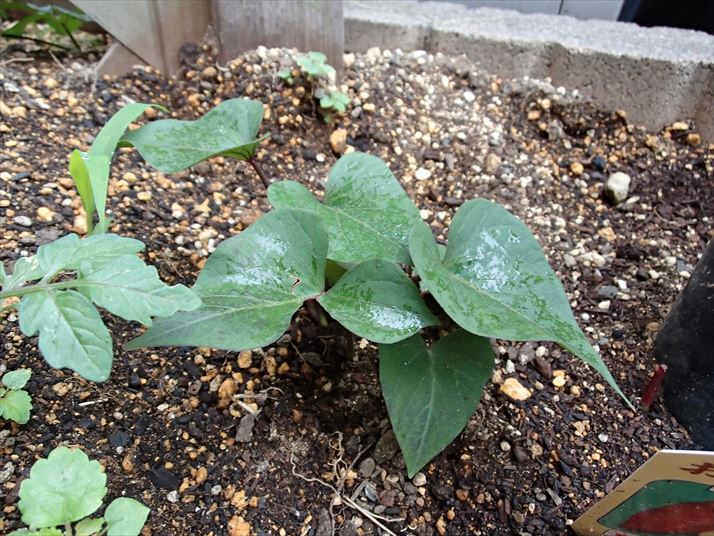 いつのまにサツマイモの横にトマトが生えていますよ!!うーん、先週もそんな感じのものがあった気もしますが、、、成長早!!キノコみたいですね。植えた記憶もないので、おそらく去年のこぼれ種の発芽でしょう。あまり期待はしないほうがよさそうですね。