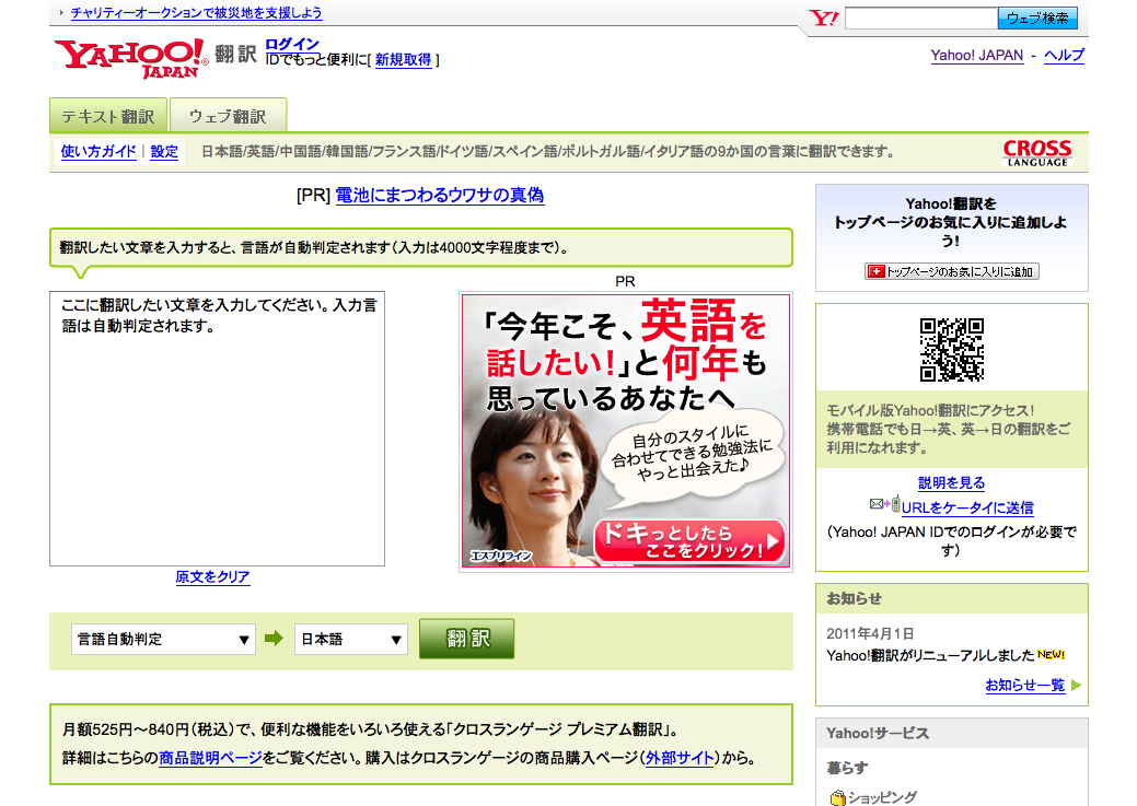 いきなりですが、yahoo翻訳はご存知でしょうか?
