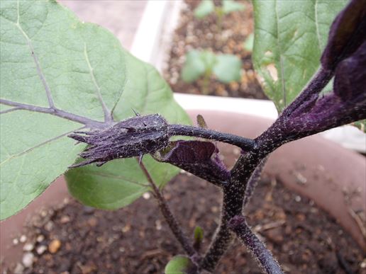 そして小なすの蕾。株の成長は遅いですが、蕾はこちらの方が大きく感じます。