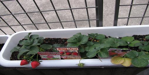 ちびっちゃいのが4つ・・・。こいつらはジャム用に取っといてあります。一応書いておきますが、四季成りイチゴはあまり甘くなくて、むしろ酸っぱいらしいので、ジャム用に育てるつもりです。そのためにも生食用で、ぜひ一季成りイチゴには頑張ってもらいたいですね。