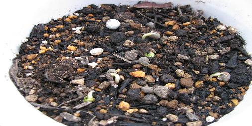 次に植木鉢の底に、赤玉土をいれます。(通気性を良くしたり、土がもれないようにするため)