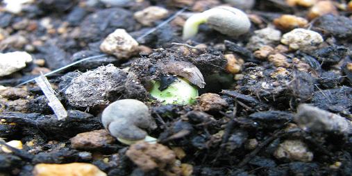 種は、4ヶ所に3つずつ蒔きます。株間は10cm程度にしてください。