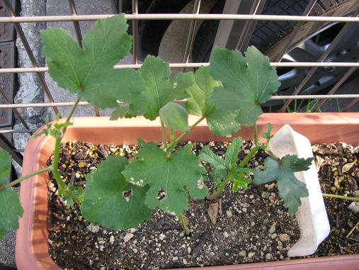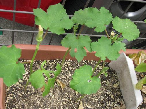 今日のオクラの様子です。なんだか場所を変えてから元気になったような気がします。(ちょっと前に場所をかえました)