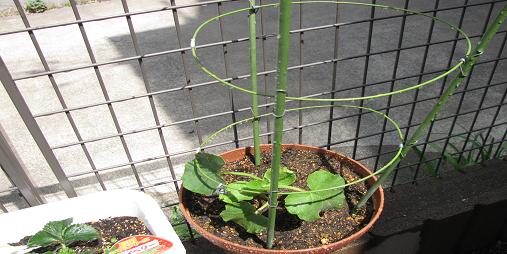 植えつけました。さすがに、植木鉢で育てて大きくなりすぎたら、大変なので、あんどん作りをするため、支柱を設置しました。早く大きくなってほしいですな。