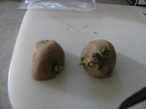 真っ二つにしました。見たところ、右側の方が、発芽しそうです。