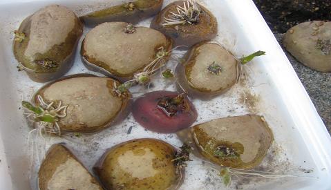 今日、ずーっと水に漬けたままだったジャガイモを、外に出します!