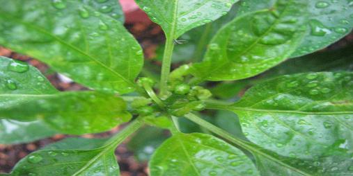 問題です。このつぼみは、ししとう、ピーマン、どちらの物でしょう。正解は、ししとうでした。なんといきなりつぼみが、2つあります!!順調ですな。