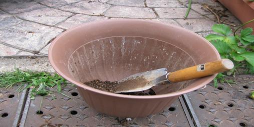 今回植えつけるのは、この植木鉢。何号かと聞かれると、答えられませんが、幅が30cmぐらいあるので大きい方だと思います。では、さっさと植えつけてしまいましょう。