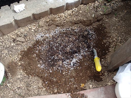 ごちゃ混ぜにして完了。結構土づくりは適当ですね。でも大丈夫です。一応前回土づくりしてあるんでね。