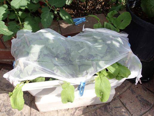 だって冷静に考えてみてください。防風といえど、ネットの穴の幅は4mm。20日大根の大敵のモンシロチョウを見事に通しません!!
