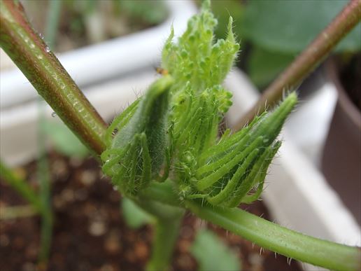 実はですねぇ、本来今年はゴーヤを育てる予定はなかったんですよ。しかし、ジャガイモを収穫してからその収穫後の植木鉢に育てる野菜を決めるのを忘れていましてねぇ。。。