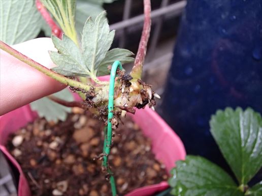 そして謎のイチゴのランナーには、根が生え始めていました。順調なりー。