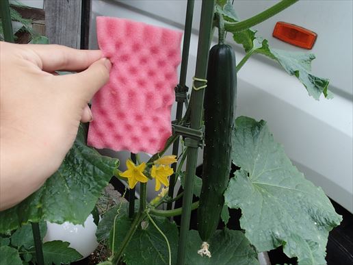そしていつの間に巨大な胡瓜が…スポンジと比べてもこの大きさ。でっけぇ。。。