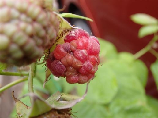 そしてラズベリーも色づきはじめました。こちらもまだ、う~んという色。こうご期待!!