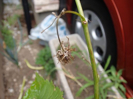 しかし世の中いいことばかりは続きません。おそらく受粉に失敗して枯れてしまった実。無念!!