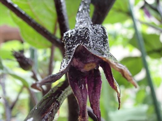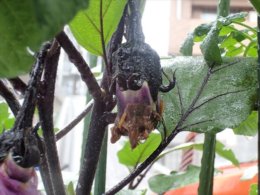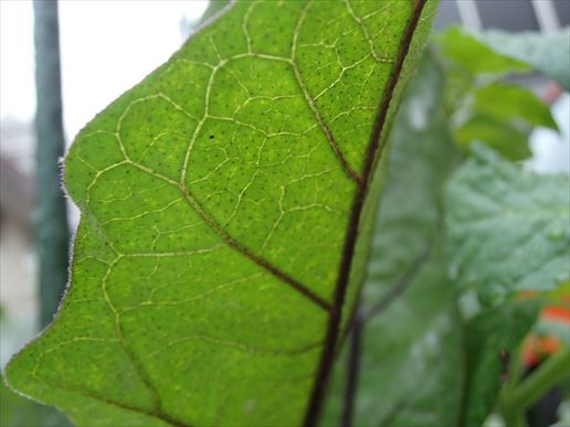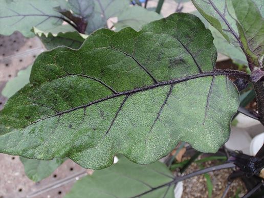 葉の形がおかしい???気がします。普通茄子の葉ってきれいな楕円形なのに、ギザギザしているんですよ。さらに・・・