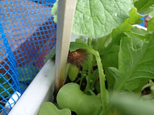 なんと!!根を探そうと葉をどかした瞬間。けむしがあらわれたんですよ!!