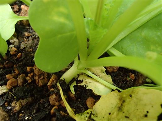 今回は白い大根の根元。若干ですがこちらも膨らんできましたね。やった!!