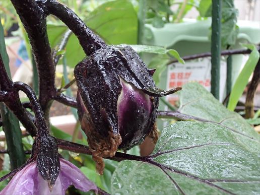 そしていつのまに、小茄子が実っていました。前回はこのサイズで収穫しましたが、今回は一番果じゃないので、もうちょっと待ちます。